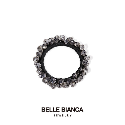 Black Cord Hair Scrunchie with Ink Crystal Beads