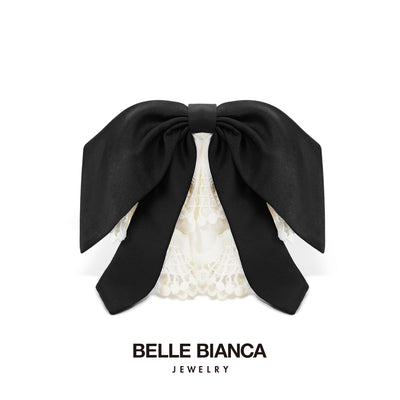 Black Satin & White Lace Bow Hair Accessory