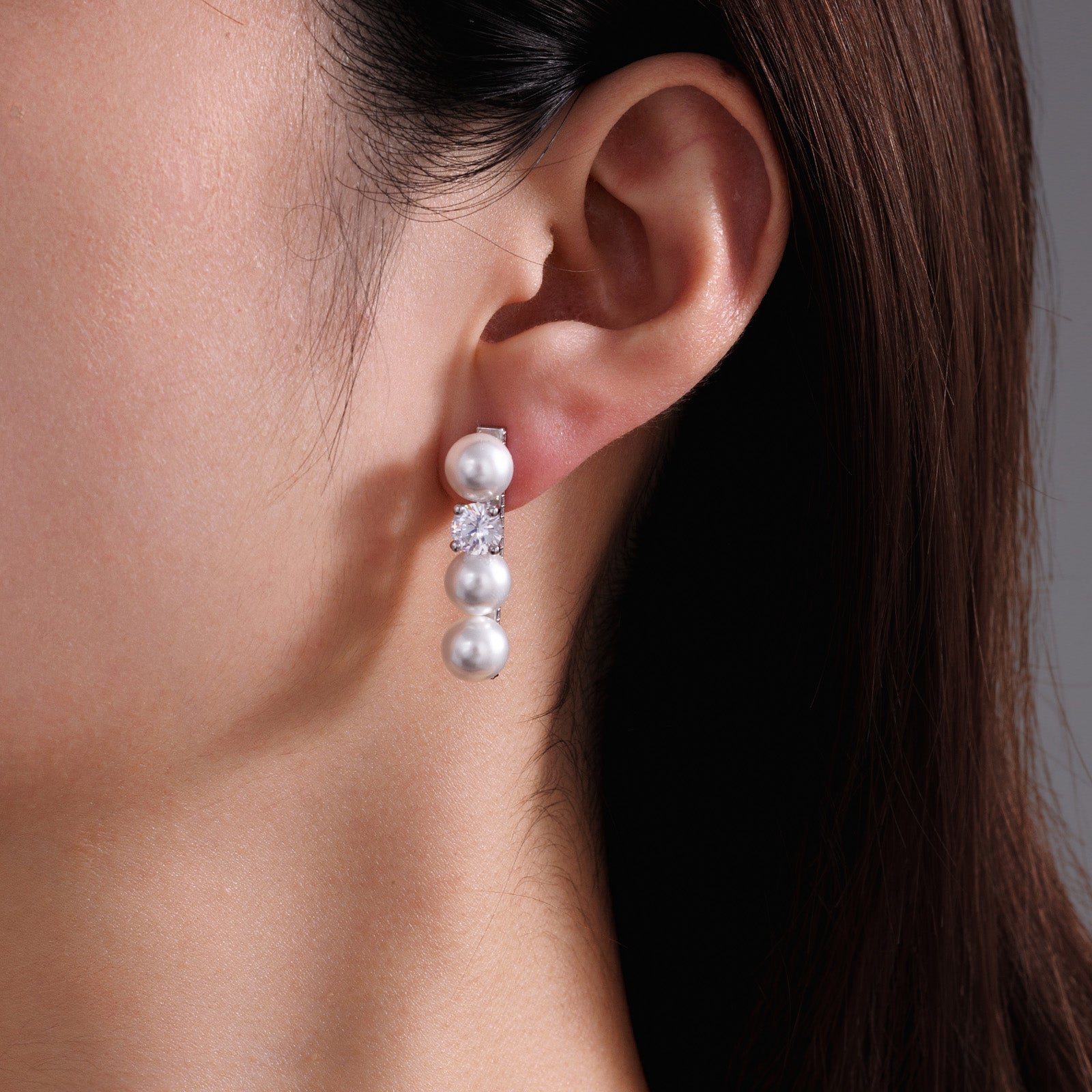 Pearl & Silver-Heart Layered Earrings