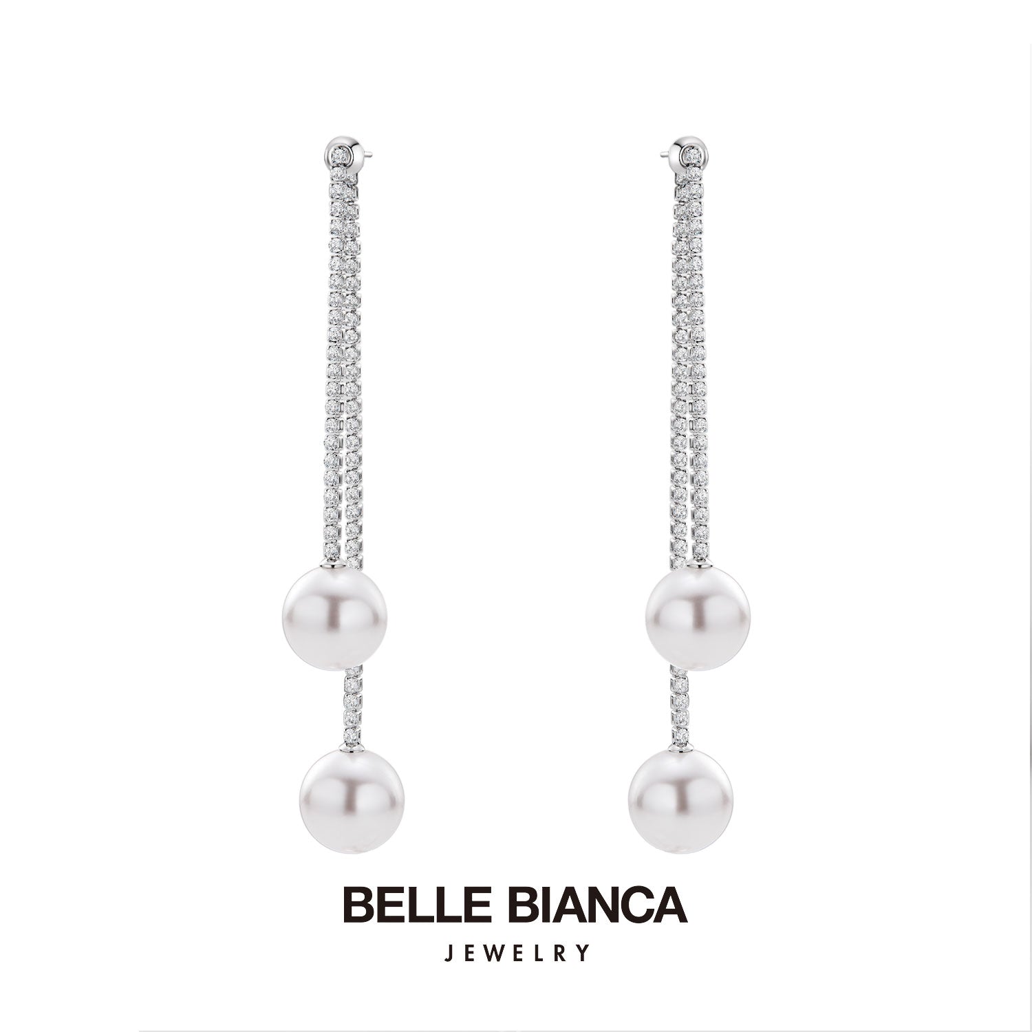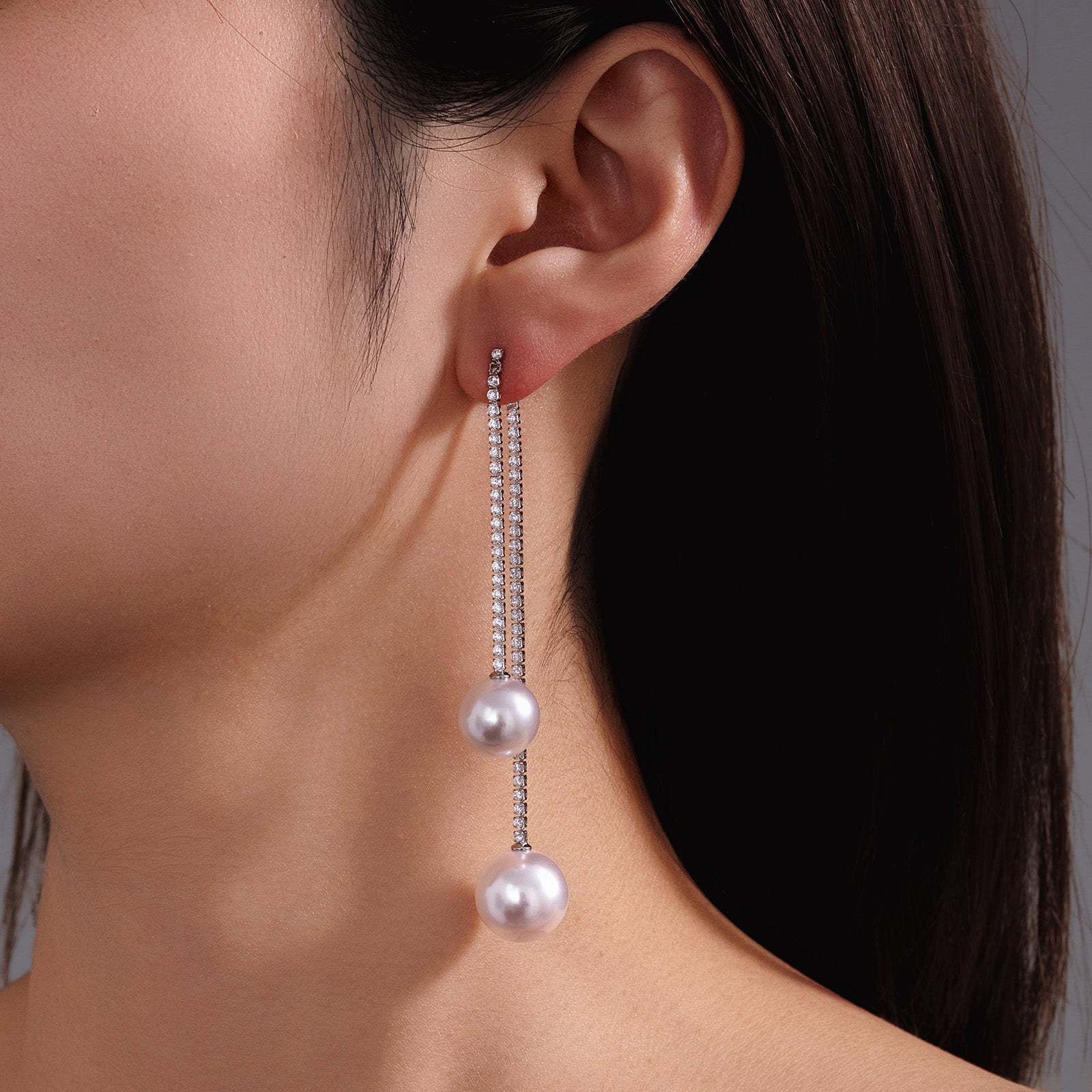 Silver Chain Diamond - Inlaid Round Bead Earrings