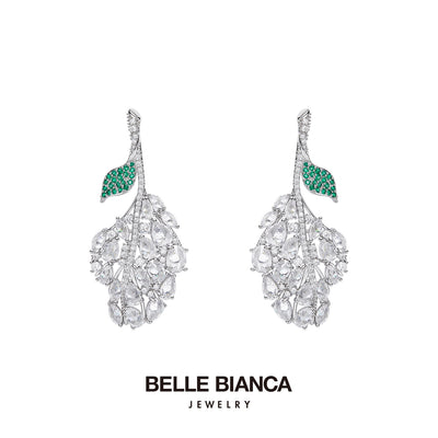 Luminous Emerald Crystal Clustered Leaf Earrings