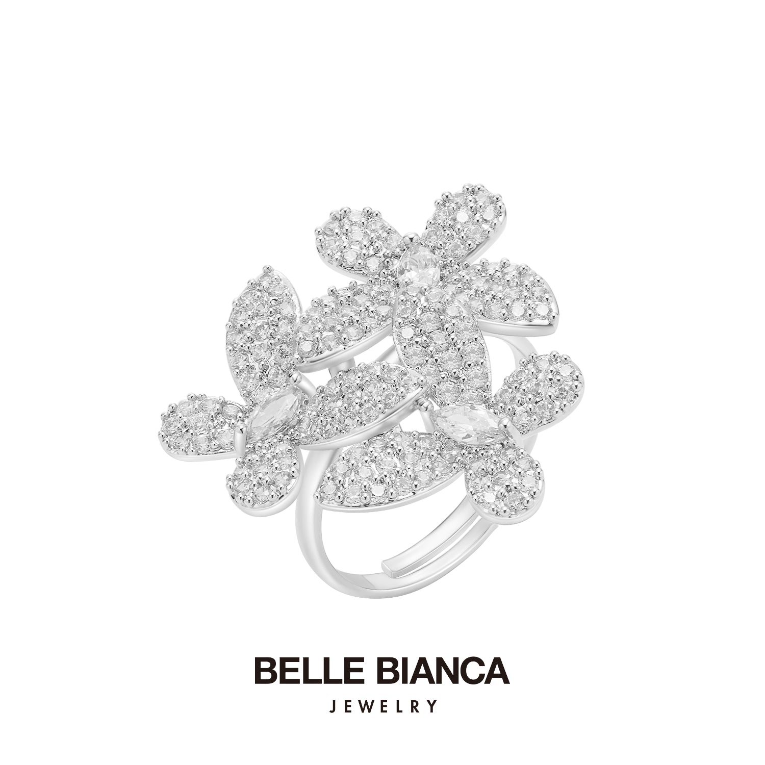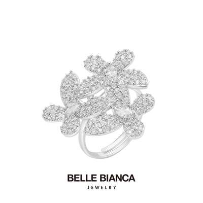 Romantic Floral Cluster Sparkling Art Ring - 2 Colors Available